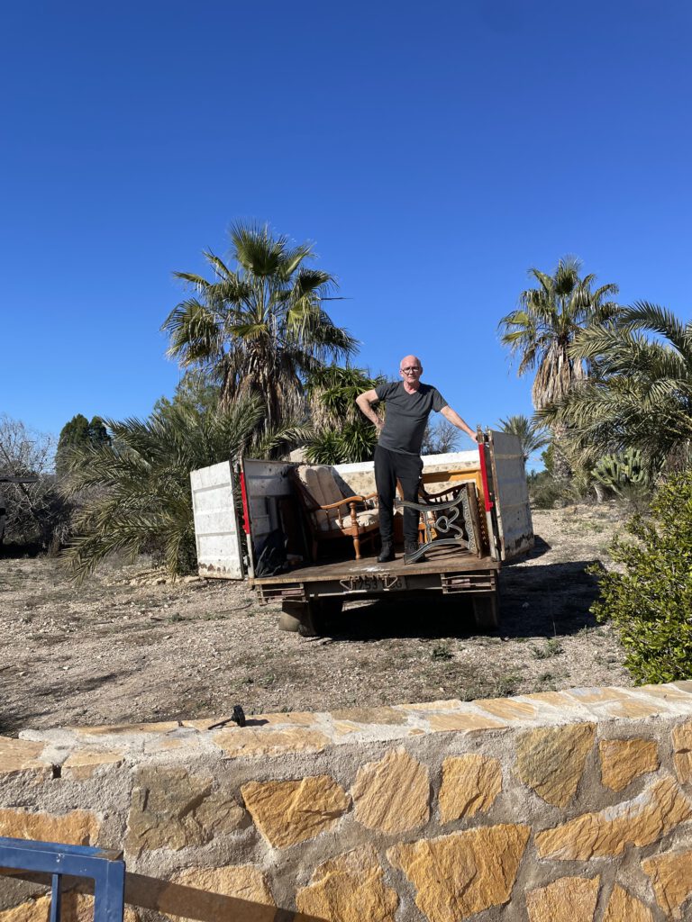 In de middag komt Damian terug met een ander vriend, da’s een timmerman. Met 35 jaar ervaring. Samen beginnen ze de keuken te demonteren. Als eerste de kraan maar een losdraaien, dacht Damian. Vervolgens grote paniek: het water spuit alle kanten op! Vreemd, want op de aansluiting zit een stopkraan. En die zou het water dus tegen moeten houden. Kees sprint naar de straat, want daar zit de watermeter (en da’s best ver weg vanuit de keuken) en draait de hoofdkraan dicht. Blijkt dat Damian de complete kraan heeft afgebroken van de leiding. En doet dat vervolgens bij de andere kraan nog eens. Lekker dan. Geen water meer. Eerst moet Javier weer terug langskomen om de aansluiting te repareren. Gelukkig wist hij de weg nog. Stop in de leidingen en het water kan er weer op. Ondertussen stond de hele keuken al buiten. Later in de middag kwam Damian terug, met een enorme aanhanger. Spullen inladen en daar ging hij weer. Tot 4x toe is er een aanhanger met spullen weggereden. De laatste vracht werd in het donker afgehaald.