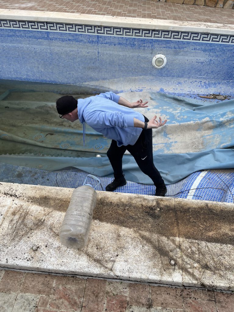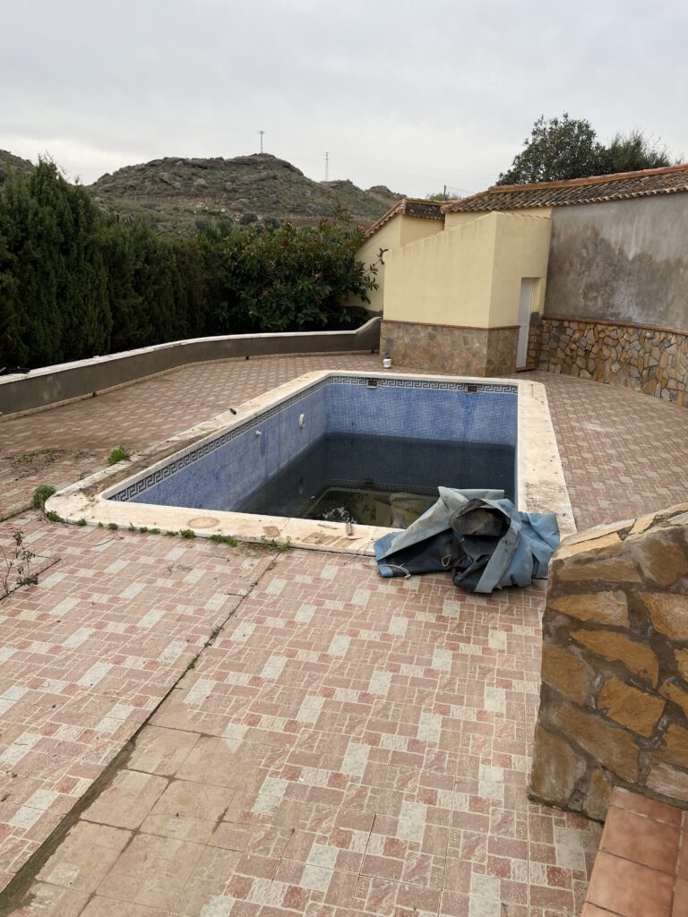 Maar voordat het zover is komt Damian langs met een andere vriend van hem, Javier. Die doet in leidingen en in zwembaden. Javier gaat een offerte maken voor ons om het zwembad weer volledig operationeel te krijgen. Alles moet even nagelopen worden. Dus we leggen dat allemaal uit. En vervolgens vertrekken de mannen weer.