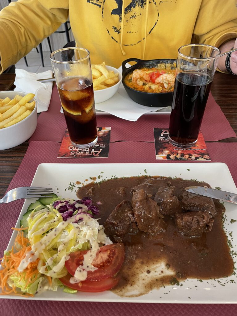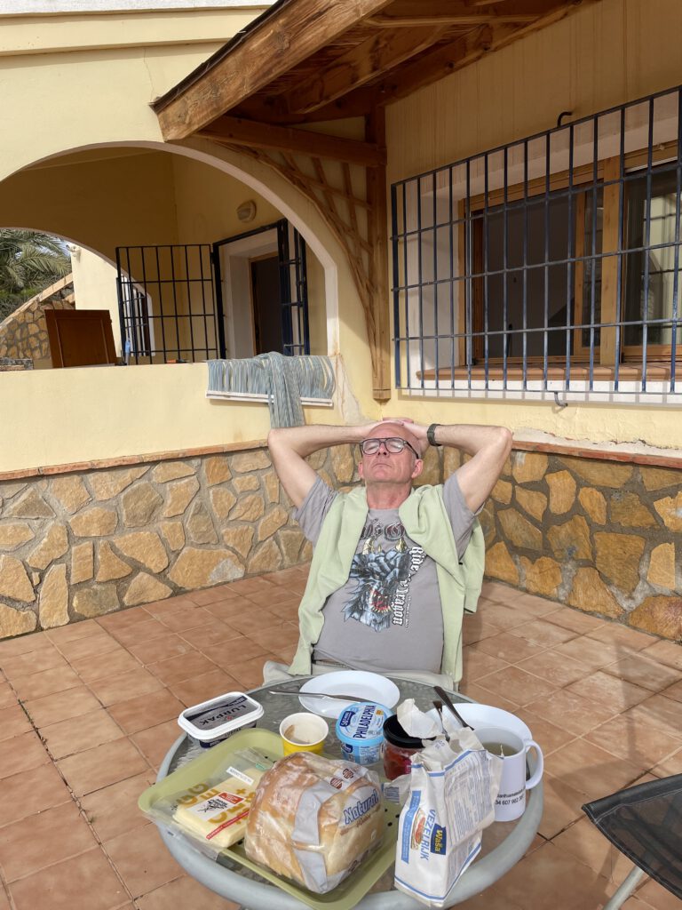 We zijn daarom teruggegaan naar San Juan de los Terreros. Kees had al een poosje verhalen gehoord over Annie’s Bistro. Van een Belgische dame. Dus daar heen gegaan. En daar hebben we heerlijk gegeten! Aanrader dus. Daarna nog even naar de Chinese winkels geweest, voor wat losse spulletjes die we nodig hebben (die Chinese winkels zijn eigenlijk Temu in winkel-vorm. Je koop daar ongelofelijk vel zooi voor weinig).