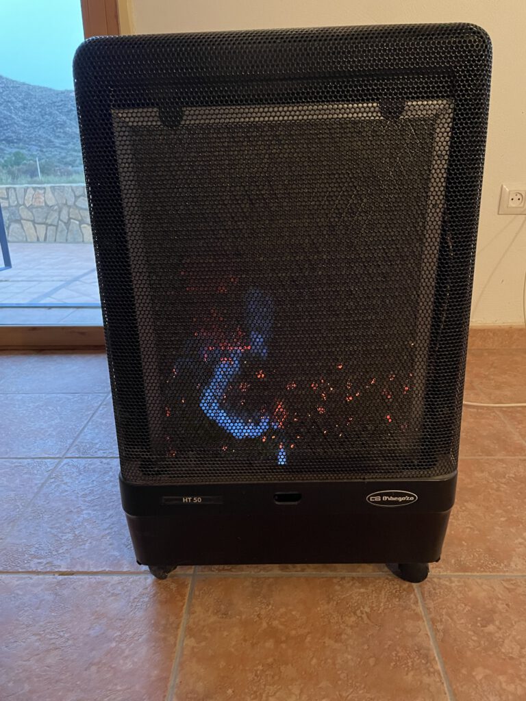 Maar gelukkig staan er twee gaskachels in het huis die gevoed worden met gasflessen. We hadden er eentje gevonden die nog half vol was, maar we moesten zo langzamerhand wel weer een nieuwe.